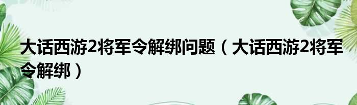 大话西游2将军令解绑问题(大话西游2将军令解绑)
