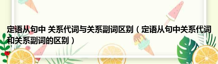 定语从句中 关系代词与关系副词区别(定语从句中关系代词和关系副词的区别)
