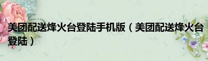 美团配送烽火台登陆手机版(美团配送烽火台登陆)