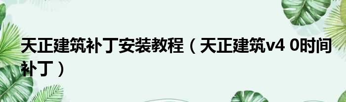 天正建筑补丁安装教程(天正建筑v4 0时间补丁)