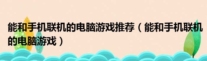 能和手机联机的电脑游戏推荐(能和手机联机的电脑游戏)