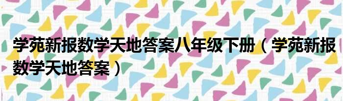 学苑新报数学天地答案八年级下册(学苑新报数学天地答案)