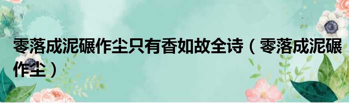 零落成泥碾作尘只有香如故全诗(零落成泥碾作尘)