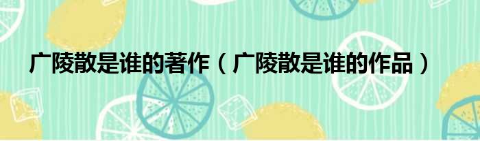 广陵散是谁的著作(广陵散是谁的作品)