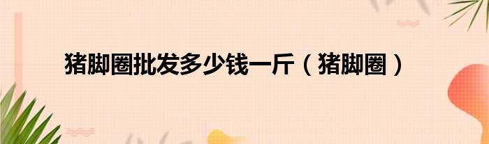 大家好,小东方来为大家解答以上的问题。猪脚圈批发多少钱一斤,猪脚圈这个很多人还不知道,现在让我们一起来看看吧!