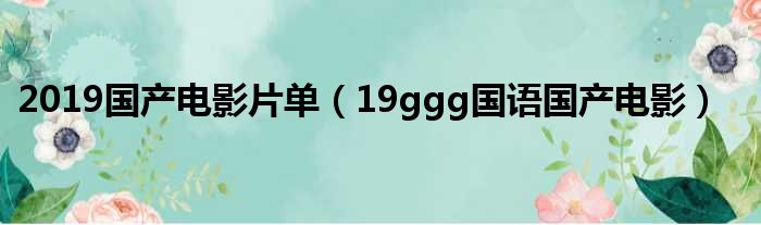 大家好,小东方来为大家解答以上的问题。2019国产电影片单,19ggg国语国产电影这个很多人还不知道,现在让我们一起来看看吧!