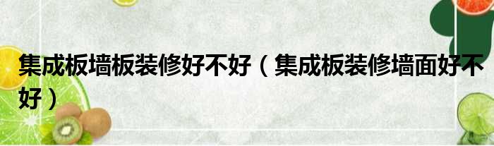 集成板墙板装修好不好(集成板装修墙面好不好)