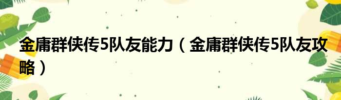 金庸群侠传5队友能力(金庸群侠传5队友攻略)