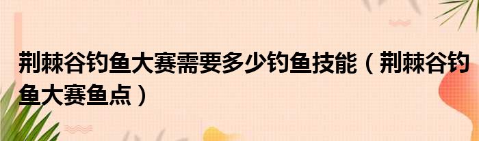 荆棘谷钓鱼大赛需要多少钓鱼技能(荆棘谷钓鱼大赛鱼点)