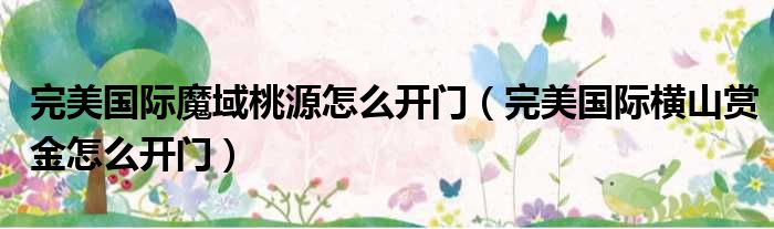 完美国际魔域桃源怎么开门(完美国际横山赏金怎么开门)