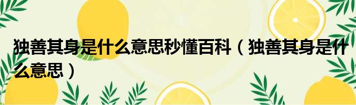 独善其身是什么意思秒懂百科(独善其身是什么意思)