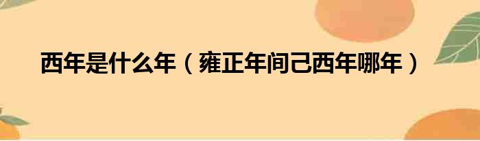 大家好,小东方来为大家解答以上的问题。西年是什么年,雍正年间己西年哪年这个很多人还不知道,现在让我们一起来看看吧!