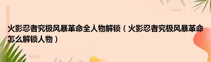火影忍者究极风暴革命全人物解锁(火影忍者究极风暴革命怎么解锁人物)