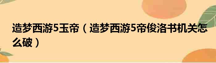 造梦西游5玉帝(造梦西游5帝俊洛书机关怎么破)