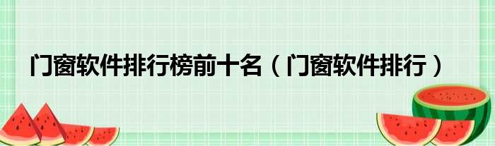 大家好,小东方来为大家解答以上的问题。门窗软件排行榜前十名,门窗软件排行这个很多人还不知道,现在让我们一起来看看吧!
