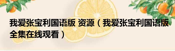 我爱张宝利国语版 资源(我爱张宝利国语版全集在线观看)