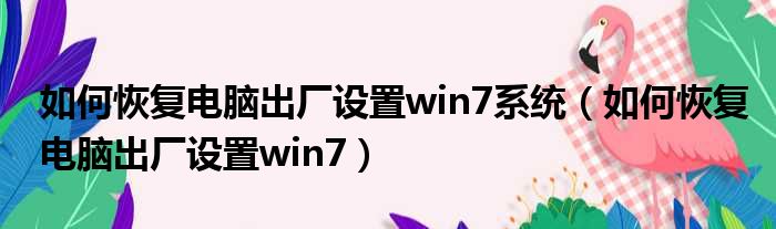 如何恢复电脑出厂设置win7系统(如何恢复电脑出厂设置win7)