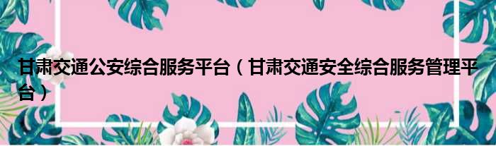 甘肃交通公安综合服务平台(甘肃交通安全综合服务管理平台)
