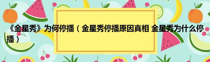 3、 金星秀停播原因真相 金星秀为什么停播 该消息一出,网友们议论纷纷,表示不敢相信,有网友评论道:这个节目陪伴了我两年,是这个节目让我爱上了你。