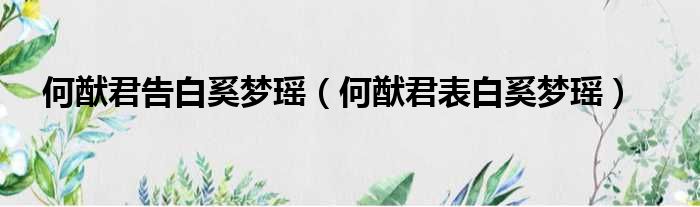 何猷君告白奚梦瑶(何猷君表白奚梦瑶)