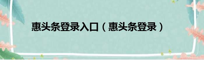 大家好,小东方来为大家解答以上的问题。惠头条登录入口,惠头条登录这个很多人还不知道,现在让我们一起来看看吧!