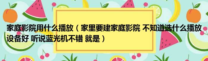家庭影院用什么播放(家里要建家庭影院 不知道选什么播放设备好 听说蓝光机不错 就是)