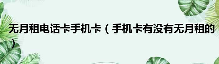 无月租电话卡手机卡(手机卡有没有无月租的)