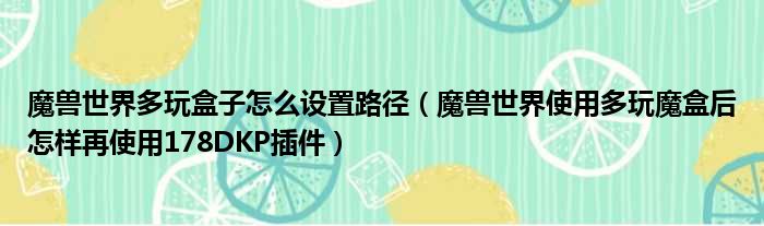 魔兽世界多玩盒子怎么设置路径(魔兽世界使用多玩魔盒后怎样再使用178DKP插件)