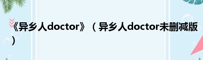 大家好,小东方来为大家解答以上的问题。《异乡人doctor》,异乡人doctor未删减版这个很多人还不知道,现在让我们一起来看看吧!