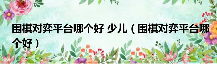 围棋对弈平台哪个好 少儿(围棋对弈平台哪个好)