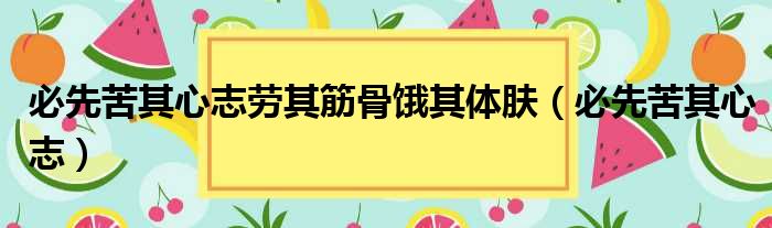 必先苦其心志劳其筋骨饿其体肤(必先苦其心志)