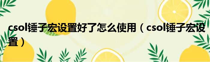 csol锤子宏设置好了怎么使用(csol锤子宏设置)