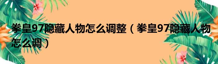 拳皇97隐藏人物怎么调整(拳皇97隐藏人物怎么调)