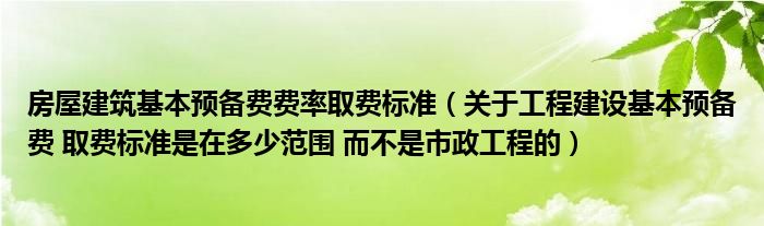 房屋建筑基本预备费费率取费标准(关于工程建设基本预备费 取费标准是在多少范围 而不是市政工程的)