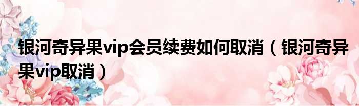 银河奇异果vip会员续费如何取消(银河奇异果vip取消)