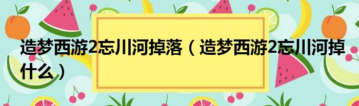 造梦西游2忘川河掉落(造梦西游2忘川河掉什么)