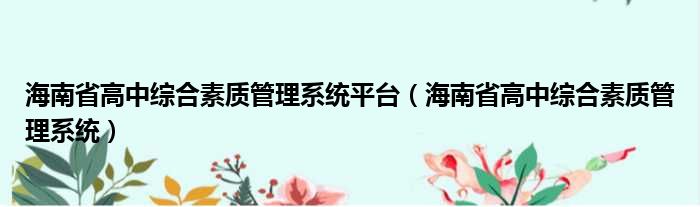 海南省高中综合素质管理系统平台(海南省高中综合素质管理系统)