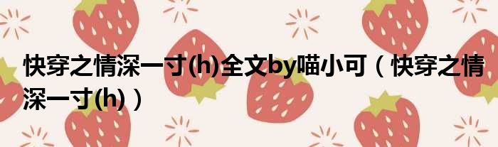 大家好,小东方来为大家解答以上的问题。快穿之情深一寸(h)全文by喵小可,快穿之情深一寸(h)这个很多人还不知道,现在让我们一起来看看吧!