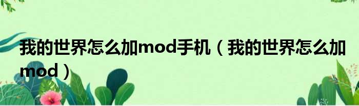 我的世界怎么加mod手机(我的世界怎么加mod)