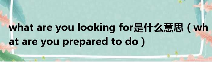 大家好,小东方来为大家解答以上的问题。what are you looking for是什么意思,what are you prepared to do这个很多人还不知道,现在让我们一起来看看吧!