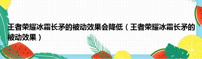 王者荣耀冰霜长矛的被动效果会降低(王者荣耀冰霜长矛的被动效果)