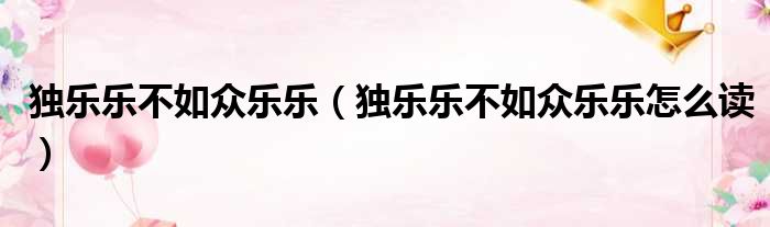 独乐乐不如众乐乐(独乐乐不如众乐乐怎么读)