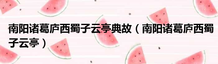 南阳诸葛庐西蜀子云亭典故(南阳诸葛庐西蜀子云亭)