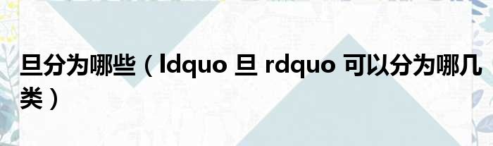 旦分为哪些(ldquo 旦 rdquo 可以分为哪几类)