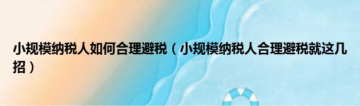 小规模纳税人如何合理避税(小规模纳税人合理避税就这几招)