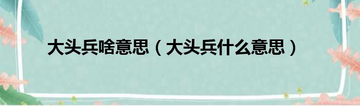 大家好,小东方来为大家解答以上的问题。大头兵啥意思,大头兵什么意思这个很多人还不知道,现在让我们一起来看看吧!