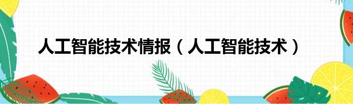 大家好,小东方来为大家解答以上的问题。人工智能技术情报,人工智能技术这个很多人还不知道,现在让我们一起来看看吧!