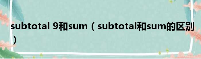 大家好,小东方来为大家解答以上的问题。subtotal 9和sum,subtotal和sum的区别这个很多人还不知道,现在让我们一起来看看吧!