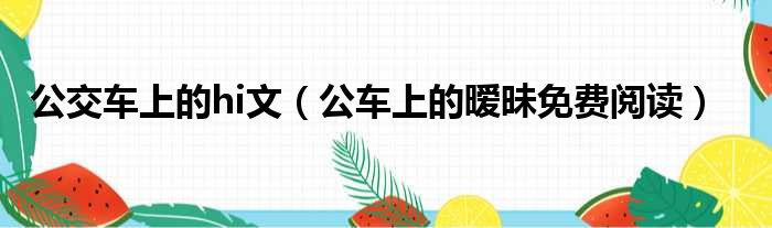 大家好,小东方来为大家解答以上的问题。公交车上的hi文,公车上的暧昧免费阅读这个很多人还不知道,现在让我们一起来看看吧!