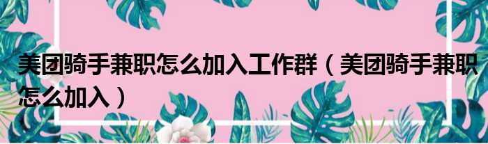 美团骑手兼职怎么加入工作群(美团骑手兼职怎么加入)